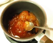 While the pastry is cooking prepare the apricot sauce by combing the preserves with the apricot brandy. Bring to a boil and then simmer for a few minutes until it's thick and smooth