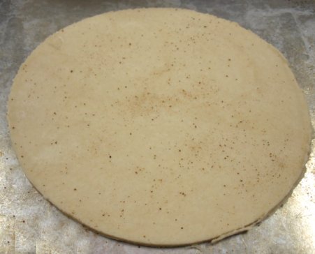 Place the round on parchment lined baking sheet and sprinkle with half the nutmeg.