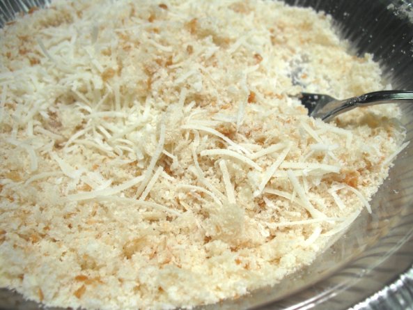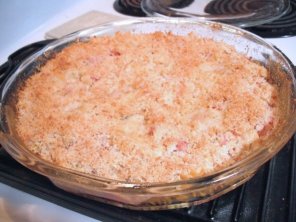 Put the mixture into an 8x8x2 buttered baking dish (or whatever size you have that will suffice)
