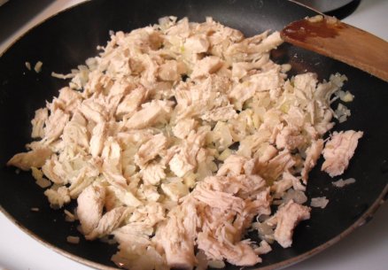 Add the chicken and onion/Garlic, basil or parsley,salt & pepper, and mix till well distributed.