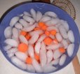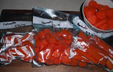 Into the freezer they go. The bowl of carrots on the right corner is for a dinner recipe tonight.