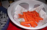 I removed them from the ice bath and placed them in a colander to drain. I put paper towels between each layer of carrots to keep the sizes separated.