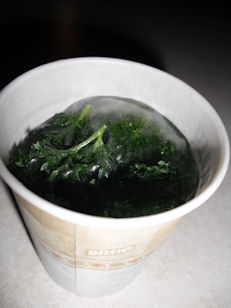 Now that it has been frozen for more than a week, I took it out and ran a little warm water around the side of the drink cup to release the Parsley "cube".