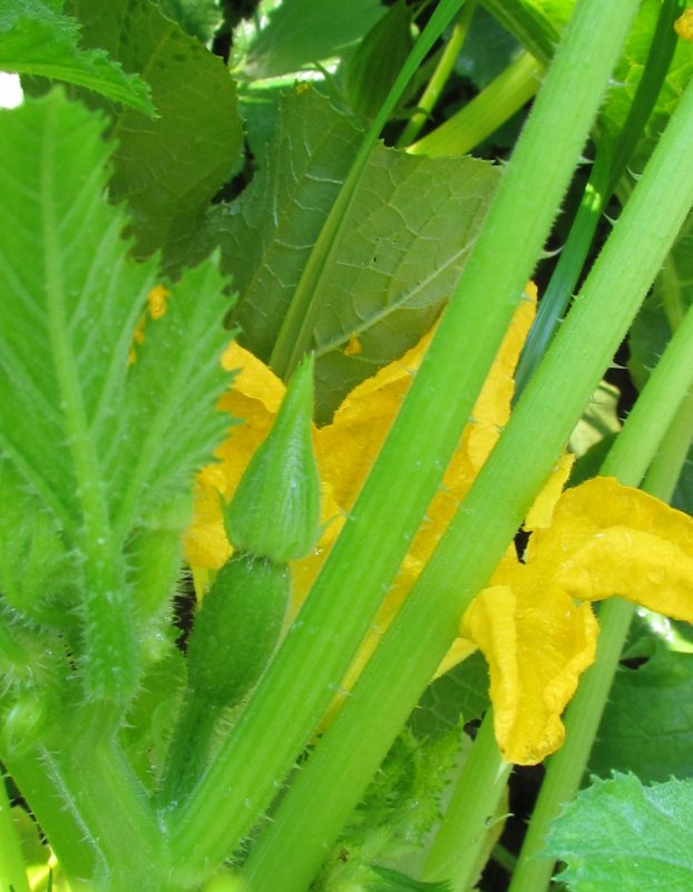 the fruit. You can see a small zucchini forming