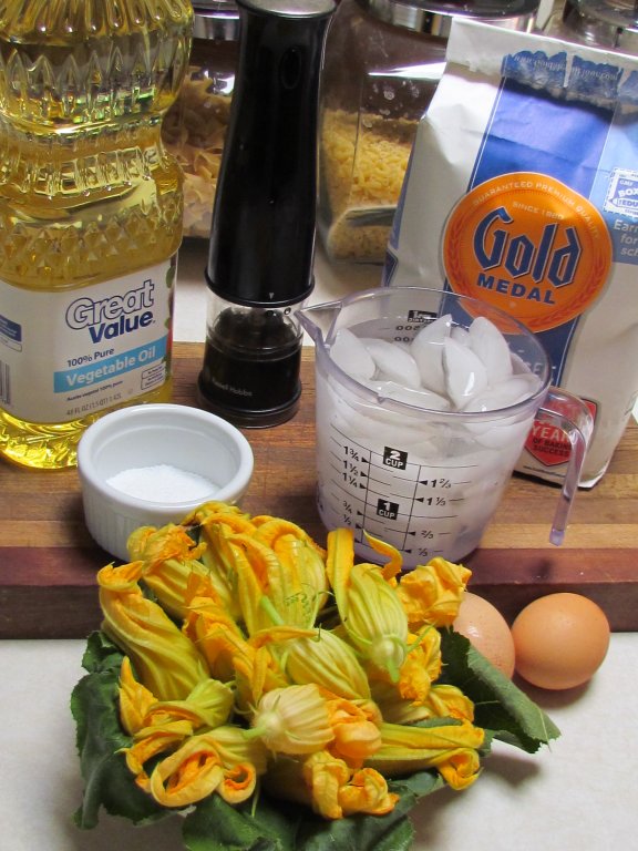 So, I planted them this year and the blossoms are FINALLY ready. (I swear I was getting up in the middle of the night with a flashlight out to the garden to check on them...well I thought about it) Next step was call Mom and find out what Grandma did as far as batter and cooking. Mom doesn't remember Grandma making them! How COULD she not remember? LOL I didn't dream it up. She made them!