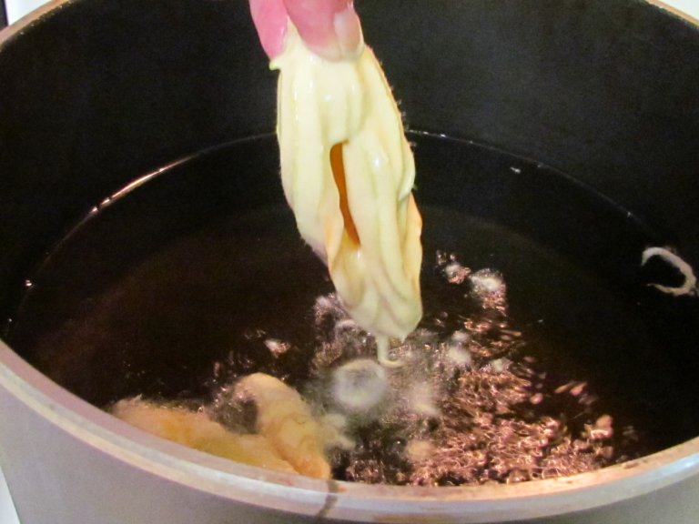 Onto the internet I went and found some instructions by Tyler Florence of the food network for a simple batter and deep frying.