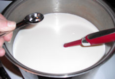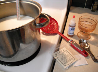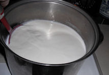 Start by warming the milk over low heat, slowly to a temperature of between 80 and 86 degrees. Remove from heat.