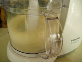 Okay, all chopped in tiny little pieces and now it gets a good whiz in the processor. The total time it took to get a good grated consistency was about 1 minute on high speed. I stopped it every now and then to check it.