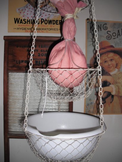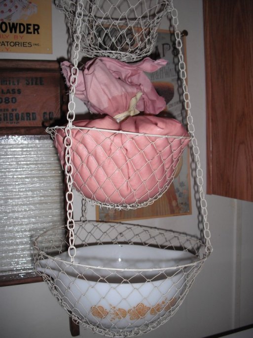 Here's how I hang the cheese to drain. These hanging baskets are very inexpensive and work perfectly for this. Now leave the cheese to drain for 6-8 hours. Watch the bowl you're draining into and empty it as needed.