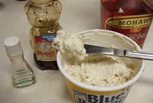 ....I will divide the cheese into containers. One I will leave alone and enjoy it as is. Some people add salt, I don't prefer that. I like my cream cheese a little sweet