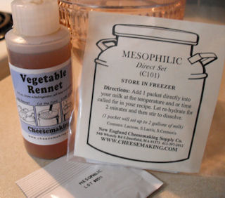 Here I have vegetable rennet, there is also animal rennet which is getting tougher to find these days.