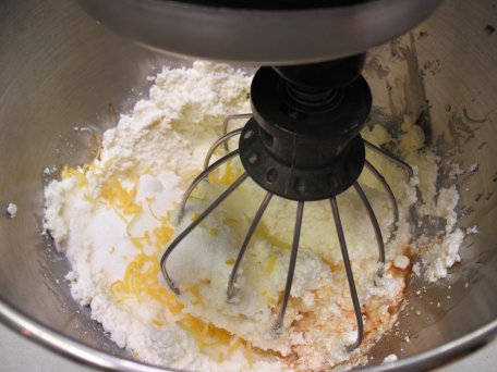 Using a blender in a medium size bowl, mix together the cream cheese, sugar, lemon juice, zest and vanilla. Make sure it is nice and smooth.