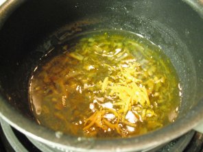 On low heat, mix the marmalade and the Orange liqueur together and heat it until it is a thinner consistency. When it's thoroughly heated, add the orange zest.