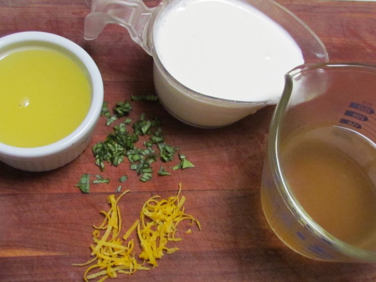 In a saucepan mix together the chicken broth, cream, lemon juice and salt. Heat to just under boiling over med. heat. Don't scald it.