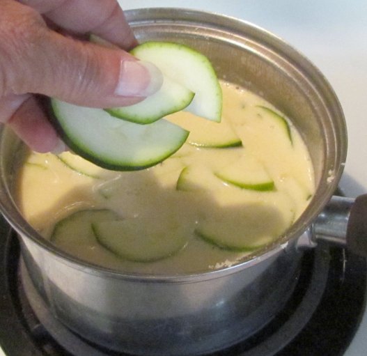 The next step is adding the zucchini and simmering. If you don't want to use the veggie, leave it out and just make the sauce. You can use it for many different recipes once the basic lemon sauce is done.