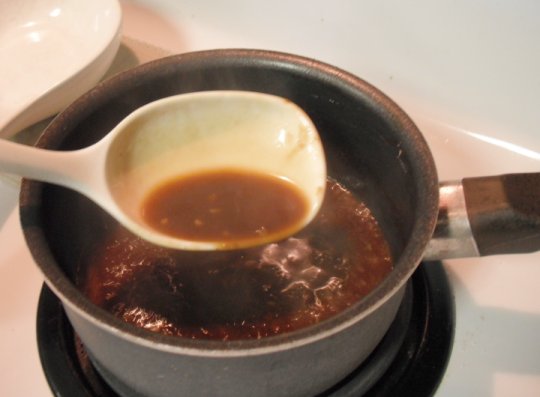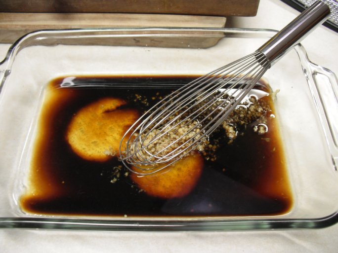 I poured the leftover marinade from the baking dish into a small saucepan and heated it to simmering. Then I added a tsp. of cornstarch dissolved in a little water and added it to the sauce.