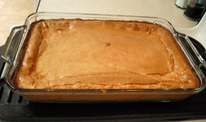 As it cools it will fall a bit. When it's cool, cut into squares. This is very rich, so be careful how big you cut those squares!