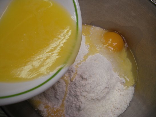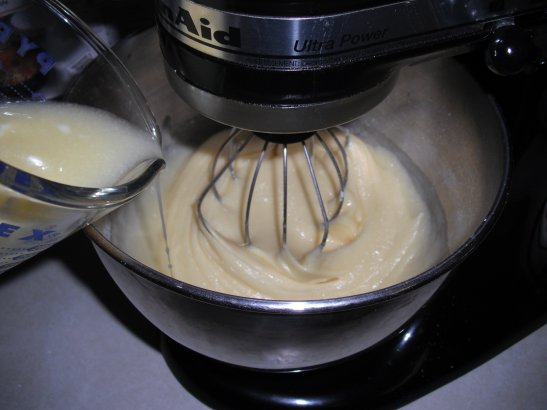 Turn the speed to low and slowly add the melted butter in, mixing it in well.