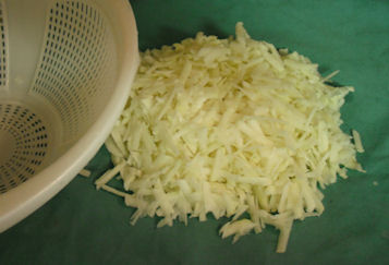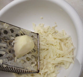 Start by peeling and grating or shredding the potatoes.I like to use the grater in a bowl so I don't get potato everywhere.