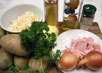 This recipe has been with me for many years. I have changed the ingredients several times and it always seems to come out tasty and crispy. This version features 3 different cheeses with thin sliced ham. I made this over the weekend and my Granddaughter helped herself to two servings...which is a sign that it was a hit. ;-)