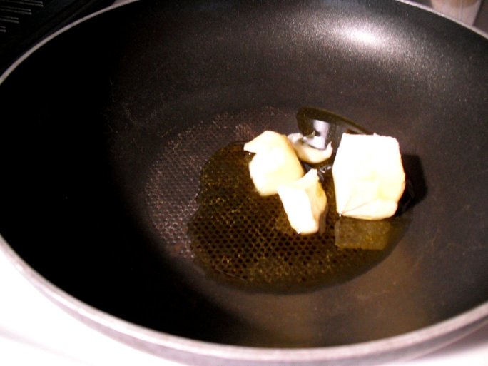 Add the butter and olive oil to your skillet and heat it on Medium.