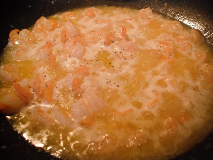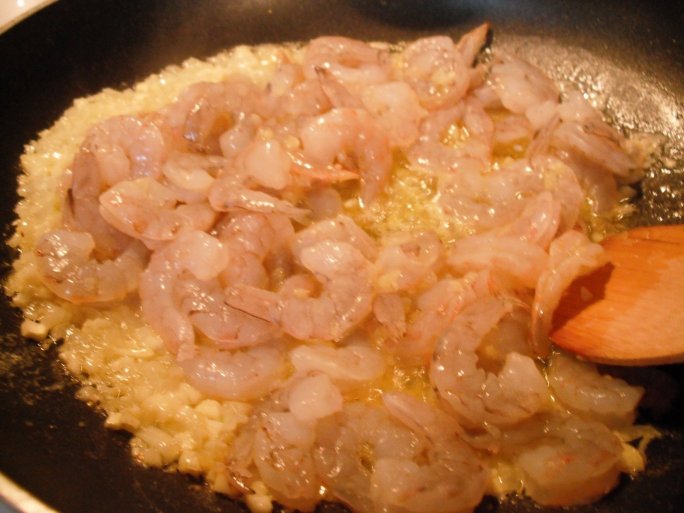 Add the shrimp to the pan and cook while stirring another 2-3 minutes until shrimp are pink. I have removed the shell tails from my shrimp