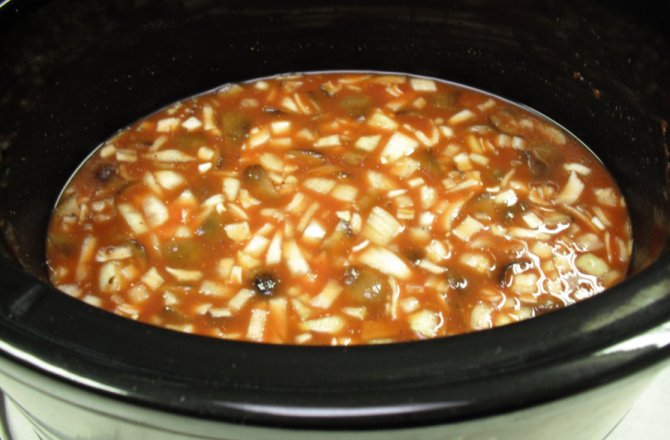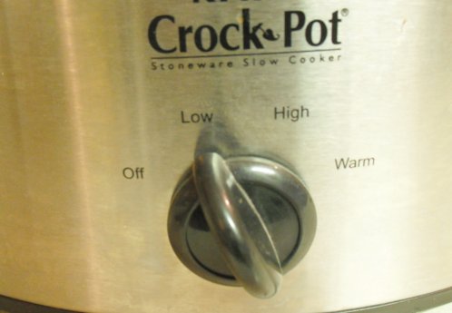 Set the crock pot to low setting and let it cook for 7-8 hours. I stir it around a couple of times during cooking to keep the edges from getting dark.