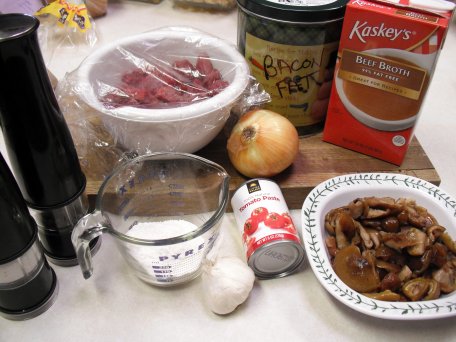 This batch of stew does not have potatoes in it because I am serving it at a card party and it will be served over potatoes. Add some cut up potatoes to it to make it a true stew.
