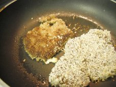 Note: I tried to bake these "schnitzels" and did not like the results. The breading was tough to deal with and it took much longer and was not as fuss-free as frying was. I felt the frying was the easiest method and they came out much more eye appealing. Tastier too.