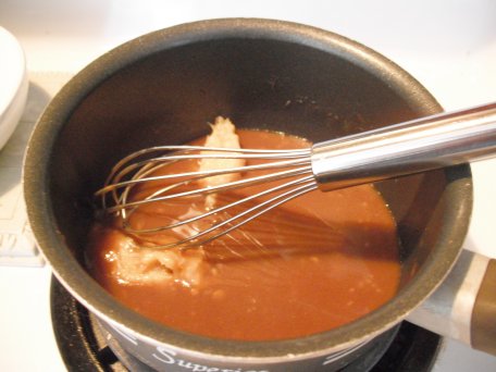 Mix together the ingredients for the sauce in a small saucepan. Bring it to a simmer over medium heat.