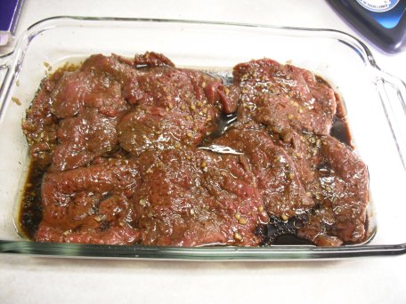 Place your venison pieces in the marinade and turn them over a couple of times to be sure they are well coated. Cover it with plastic wrap and place in the refrigerator for about an hour, turning them a couple of times during the hour to be sure they are all soaking in the marinade.